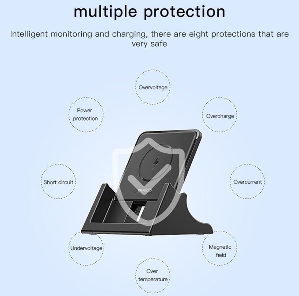 YESIDO - شاحن لاسلكي سريع DS15 بقوة 15 وات لسطح المكتب مع حامل موبايل قابل للفصل من يسيدو