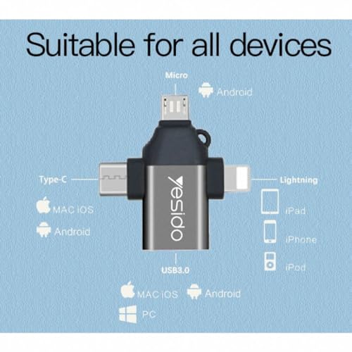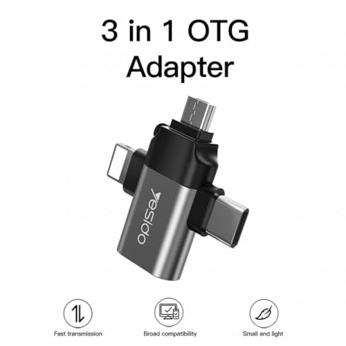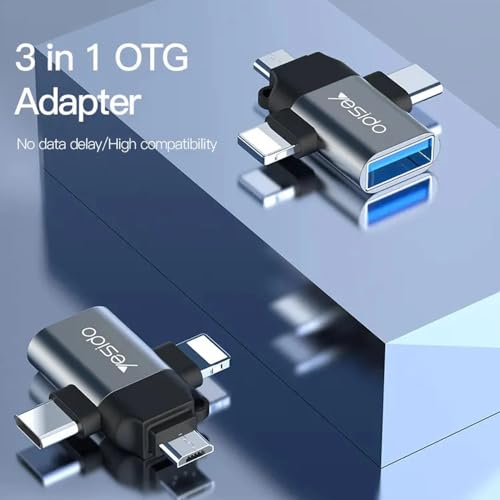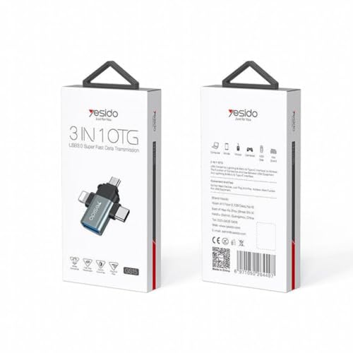Generic - وصلة محول او تي 3 في 1 بطرف USB إلى مايكرو + لايتنينج + نوع سي عالية الجودة من يسيدو موديل GS15