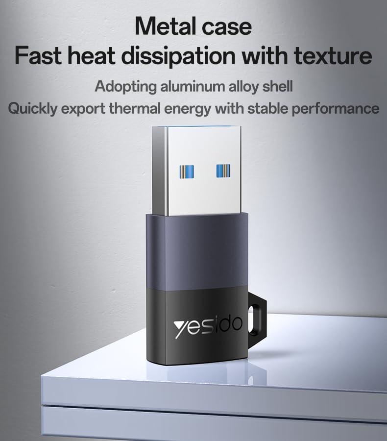 YESIDO - محول او تي USB إلى نوع سي طراز GS34، موصل USB 3.0 ذكر إلى نوع سي أنثى بنقل بيانات سريع 5 جيجابايت في الثانية، محول او تي جي لأجهزة أندرويد وماك بوك والتابلت واللابتوب من يسيدو، أسود