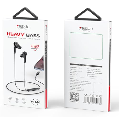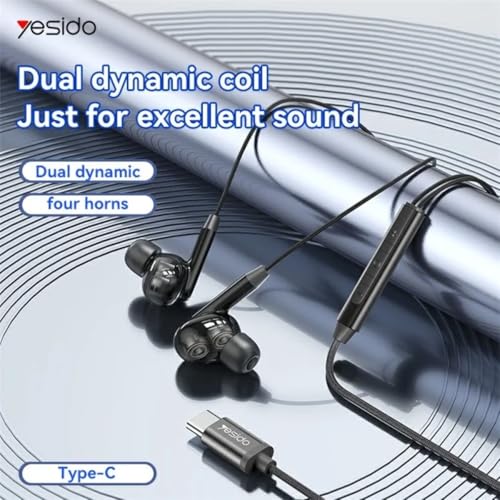 Yesido - سماعات داخل الأذن بتصميم مريح من يسيدو، مع كابل ديناميكي مزدوج من النوع C (مع ميكروفون)