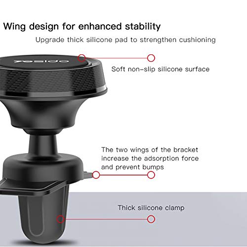 YESIDO - حامل موبايل مغناطيسي للسيارة اسود من يسيدو، حامل مغناطيسي 360 درجة يثبت على فتحة التهوية متوافق مع آيفون 12 ميني/12/12 برو وسامسونج جالكسي S21/20 او نوت الترا، وهواوي والمزيد