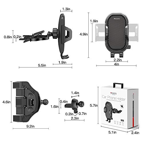 YESIDO - حامل موبايل للسيارة يونيفرسال بفتحة CD وفتحة تهوية عالمية متوافق مع ايفون 12/ 11 برو/ اكس اس ماكس/ اكس ار/ 8، جالاكسي S20 /S10 بلس/S9 من يسيدو