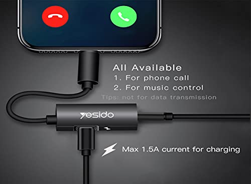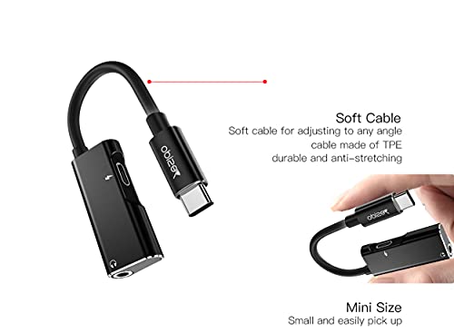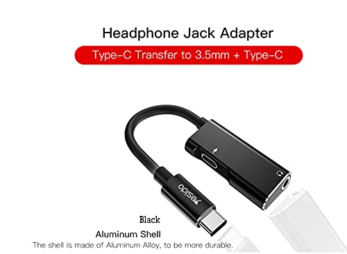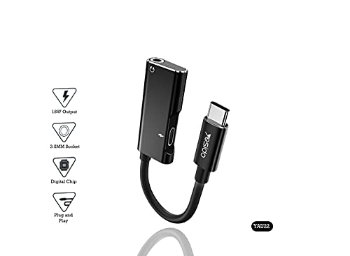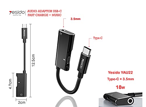 YESIDO - محوّل صوت دبليو تيك من يسيدو بمنفذ شحن سريع USB-C وكابل موسيقى الومنيوم بطبقة خارجية المطاط الحراري مضادة للكسر والتمدد للموبايلات والتابلت نوع سي اسود موديل YAU 22 عدد المنافذ: 1