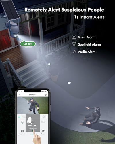 - 【كشف الأشعة تحت الحمراء، تنبيه ثلاثي】تحتوي الكاميرا الخارجية اللاسلكية على نسخة مطورة من مستشعر الأشعة تحت الحمراء الذكي بالأشعة تحت الحمراء، والذي يمكنه تحليل انحناءات جسم الإنسان واكتشاف الحركات، مما يقلل بشكل فعال من الإنذارات الزائفة. بمجرد اكتشاف شخص مشبوه، ستضيء الأضواء وسيتم تنبيه المنبه. ستذكرك رسالة الهاتف من التطبيق على الفور (1S) وسيكون الصوت ثنائي الاتجاه قادرًا على مطاردة الغريب، وهو مثالي للاستخدام في منزلك في الهواء الطلق.