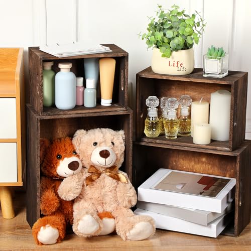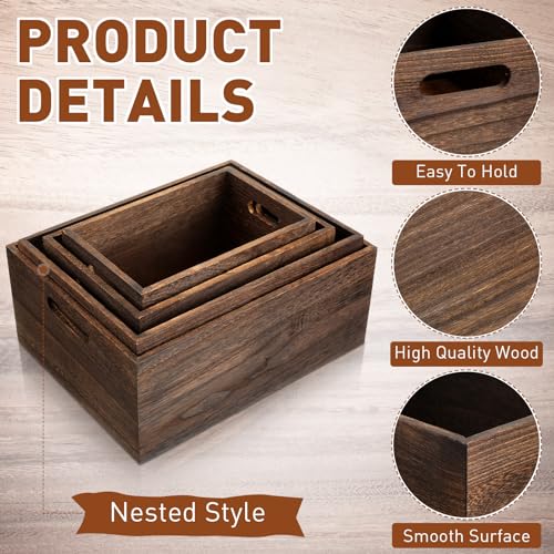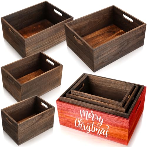 Yetene - مجموعة صناديق تخزين خشبية كبيرة بمقابض، متوفرة بـ 4 أحجام، صناديق خشبية حرفية متداخلة، سلة بنمط ريفي للمطبخ والحمام ومخزن المؤن بالمنزل، أو عرض الحفلات والتخزين من يتين مكونة من 4 قطع (لون خشبي غامق)