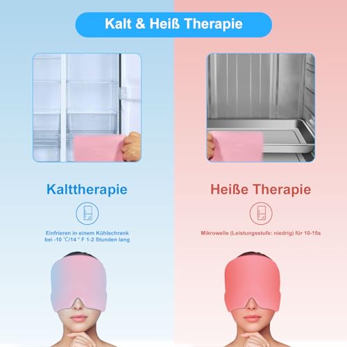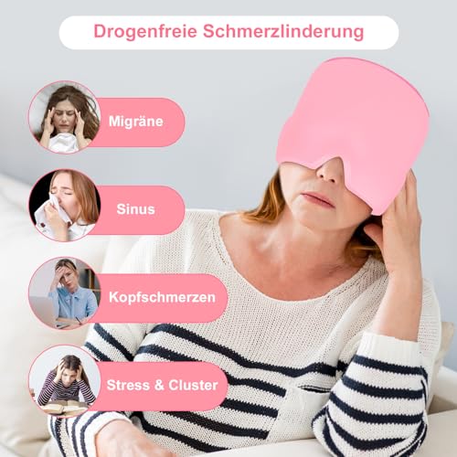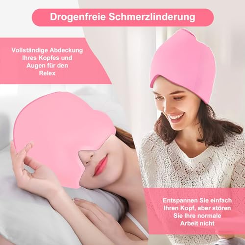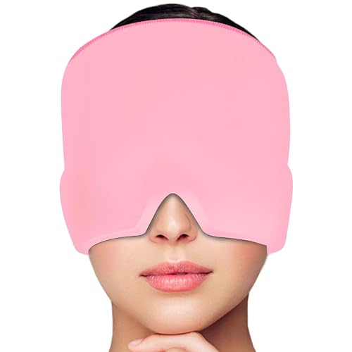 YFCVIP - قناع الصداع النصفي - وسادات تبريد قابلة لاعادة الاستخدام، قناع الصداع بالضغط البارد، قبعة رائعة لعلاج الصداع وتورم العينين وتخفيف التوتر (بينك)