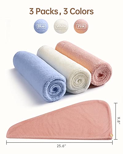 YFONG - فوطة شعر من المايكروفايبر مع زر إغلاق فائقة الامتصاص للشعر المجعد والرطب والطويل والقصير وسريعة الجفاف للنساء، فوطة مايكروفايبر مضادة للتجعد من واي فونج، 3 قطع (لون أزرق، وردي، أبيض)