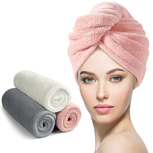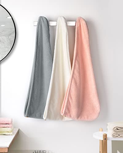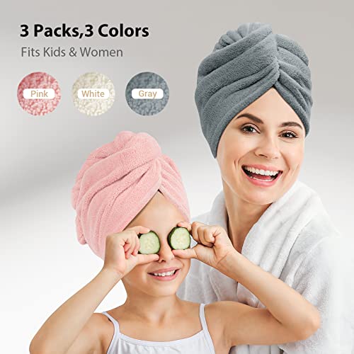 YFONG - فوطة شعر ملفوفة من المايكروفايبر مع زرار إغلاق فائقة الامتصاص، فوطة ناعمة للشعر المجعد والمبلل الطويل والقصير وسريعة الجفاف للنساء، فوطة مضادة للتجعد من واي فونج، 3 قطع (لون وردي، أبيض، رمادي)