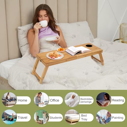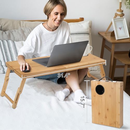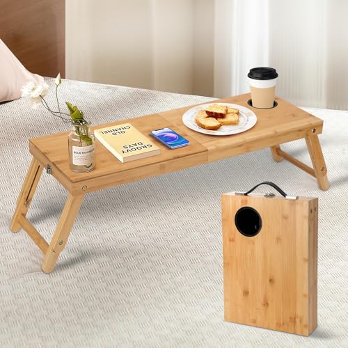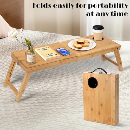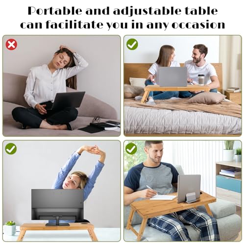 Yhaofu - طاولة لاب توب من الخيزران بتصميم منخفض قابلة للطي والتعديل، للدراسة والكتابة والألعاب والإفطار، لارج، أصفر، من ياوفو