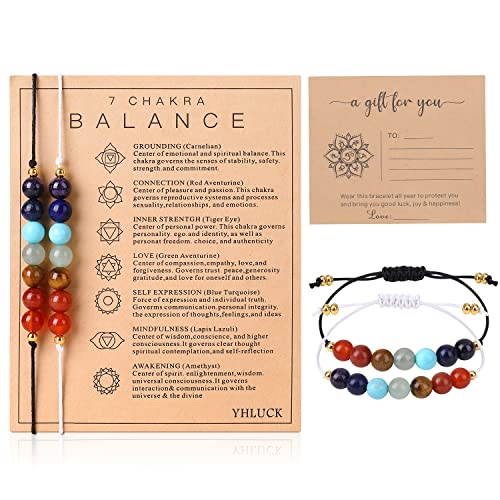 Yhluck - قطعتان من سوار للبالغين الجنسين كريستال العقيق الطبيعي مصنوع يدويًا مع بطاقات امنيات مضفر قابل للتعديل الخرز والخلخال مجموعة مجوهرات يوجا ريكي هدية للازواج والصداقة, احجار كريمة حجر نايلون, كارنيليان