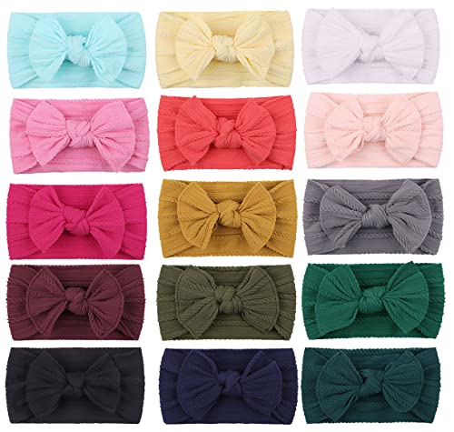 YHXX YLEN - واي اتش اكس اكس يلن 15 قطعة من عصابات الرأس للفتيات الصغيرات مع فيونكات من النايلون، شريط رأس مطاطي لحديثي الولادة للفتيات الرضع والأطفال الصغار