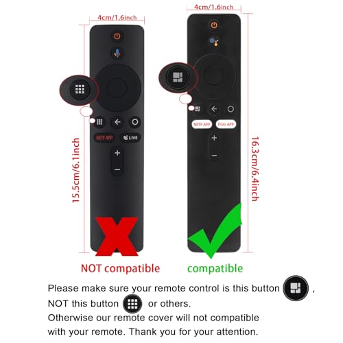 - هذه الحافظة الواقية متوافقة فقط مع جهاز التحكم عن بعد شاومي تي في ستيك 4K XMRM-M2، ولا تناسب جهاز التحكم عن بعد مي بوكس اس أو مي تي في موديل 4X/4A.