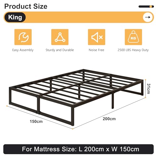 Yicensen - إطار سرير كينج مقاس 2 م × 1.5 م، إطار سرير معدني مع دعم شرائح صلبة، سهل التجميع، خالٍ من الضوضاء، لا يتطلب قاعدة مزودة بالزنبرك من ييسنسن، ارتفاع 30 سم، لون أسود
