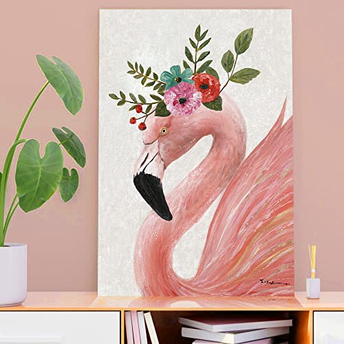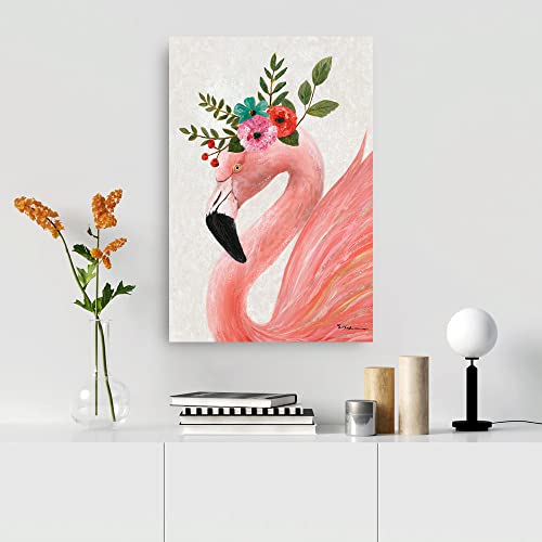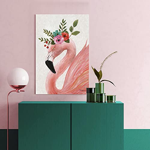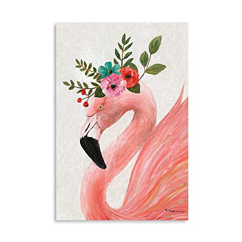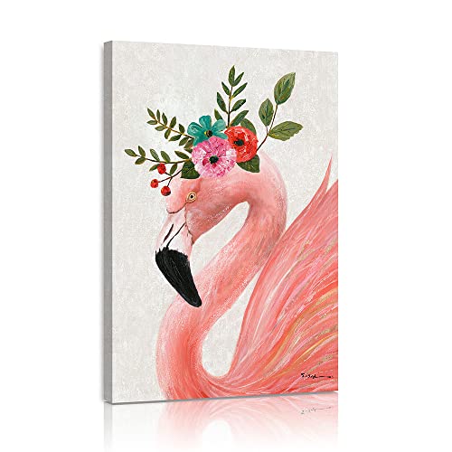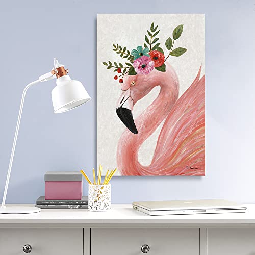 Yidepot - لوحة فنية جدارية بتصميم فلامنجو باللون الزهري: لوحة قماشية بتصميم الفلامنجو الجميل، مؤطرة وسهلة التعليق لتزيين الحائط غرفة نوم البنات والأزواج (مقاس 40.6 سم × 61 سم × 1 لوحة)، متعدد الألوان