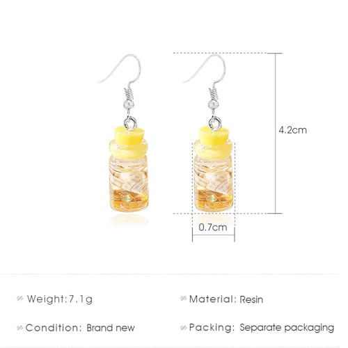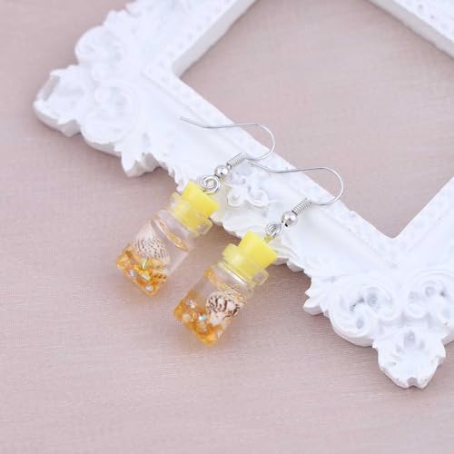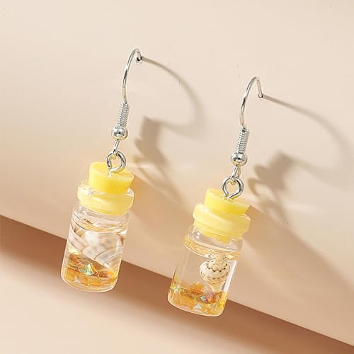 Yienate - حلقان متدلية بتصميم زجاجة فريدة من نوعها بلون أصفر يينيت ستيتمنت دريفت خفيفة الوزن الراتنج والاكريليك بوهو للشاطئ مجوهرات للنساء والفتيات