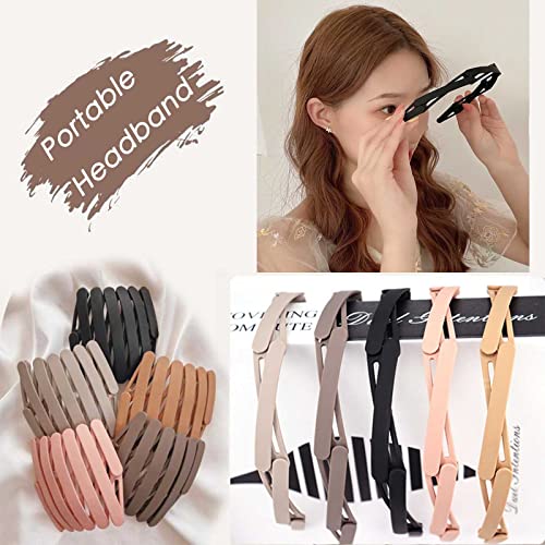 YienDoo - طوق للرأس بتصميم مموج عصري انيق مدمج ومحمول وقابل للطي والسحب والتعديل وغير قابل للانزلاق اكسسوارات شعر للنساء والفتيات 5 قطع من ييندو