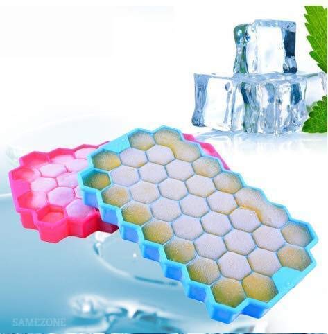YIFELY - قوالب مكعبات ثلج مرنة سيليكون بتصميم خلية نحل 37 تجويف من ييفلي، صينية قوالب مكعبات صغيرة للعصير للفريزر (ألوان متعددة) (خلية النحل - عبوة بها 2)