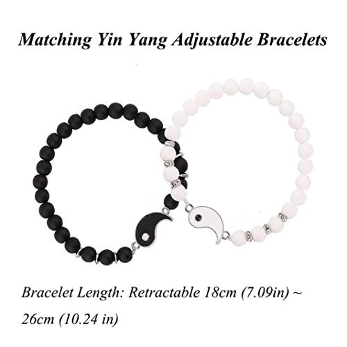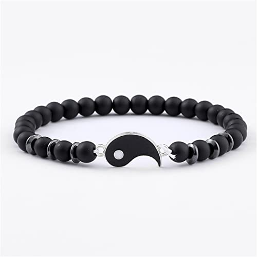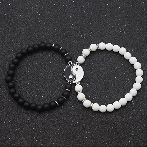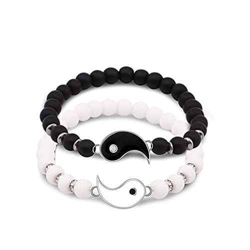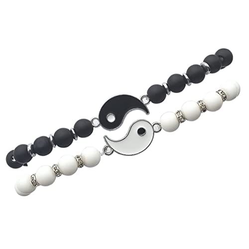Yifnny - سوار يين يانغ من ييفني، قطعتان من سوار يين يانغ المتطابق للأصدقاء والأزواج، سوار قابل للتعديل من الأحجار الطبيعية، مجموعة أساور قابلة للتمدد، سوار الصداقة للأصدقاء المقربين للنساء والرجال