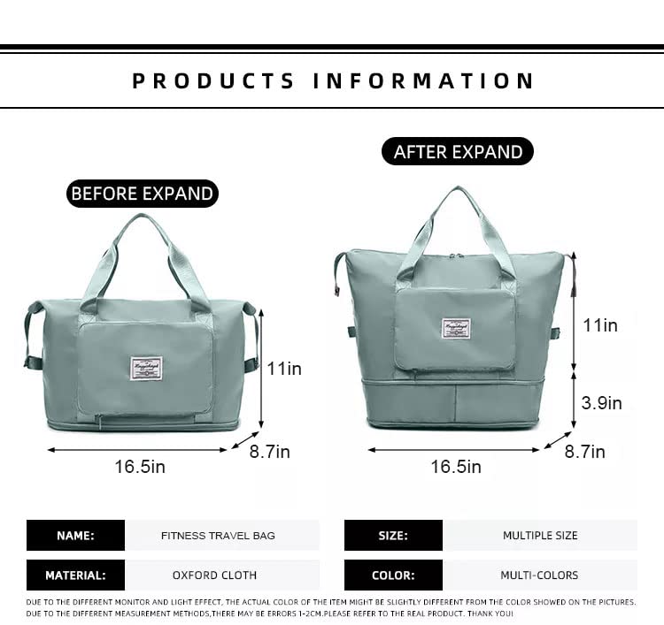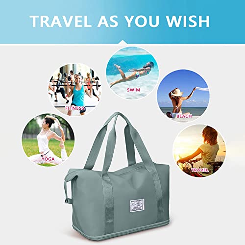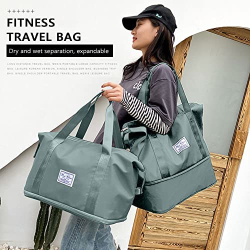 YiFrZour - شنطة سفر للنساء من ييفرزور كتف كبيرة وقابلة للطي للسفر مع مساحة تخزين للاغراض الرطبة لصالة الالعاب الرياضية والتمارين وعطلة نهاية الاسبوع أخضر