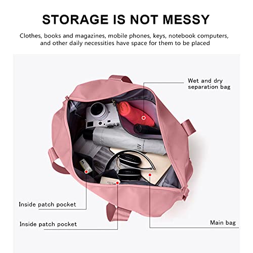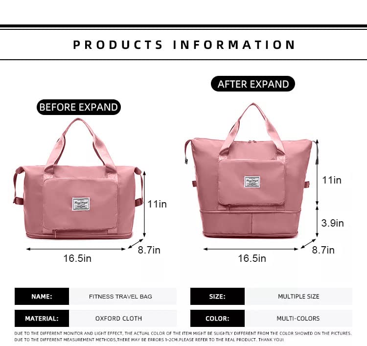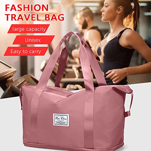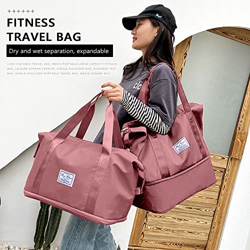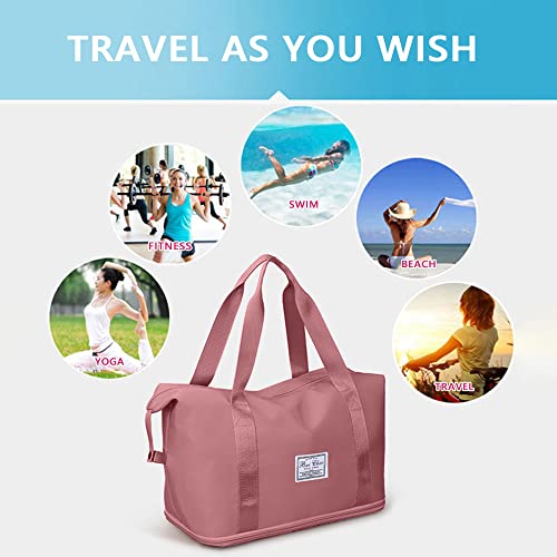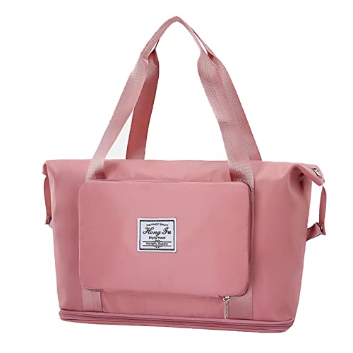 YiFrZour - شنطة سفر للنساء من ييفرزور، شنطة كتف كبيرة وقابلة للطي للسفر مع مساحة تخزين للاغراض الرطبة، لصالة الالعاب الرياضية والتمارين وعطلة نهاية الاسبوع, لوتس كلر