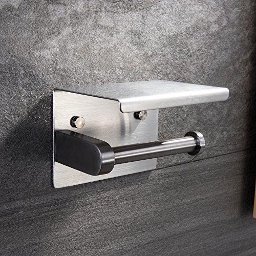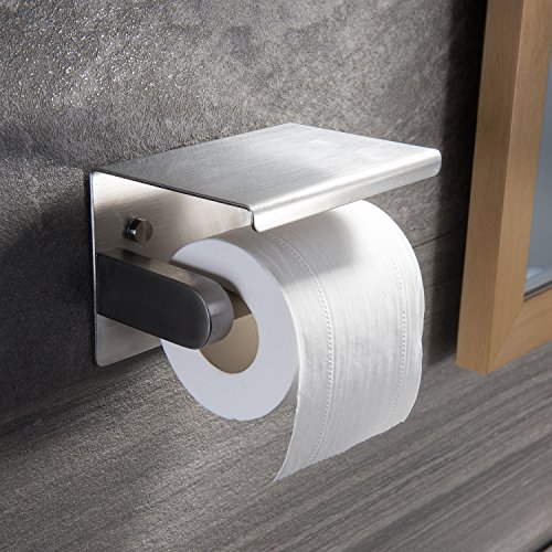 YIGII - ييجي حامل ورق تواليت - حامل ورق تواليت للحمام مع رف يثبت على الحائط من الستانلس ستيل المصقول
