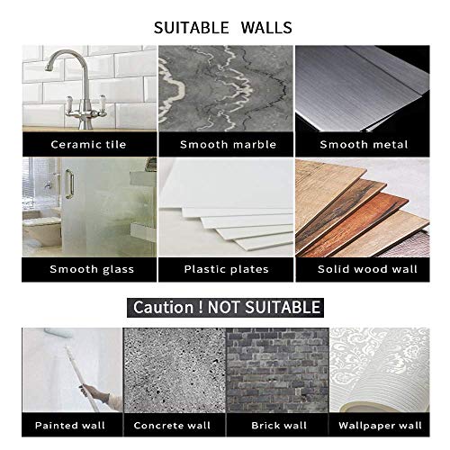 - سهلة التركيب: قبل لصقها، تأكد من أنها في الوضع المطلوب، ثم قم بإزالة الغشاء ولصقه على سطح حائط أملس، ثم اضغط لبضع ثوانٍ. (غير مناسب لورق الحائط أو الجدران المطلية)