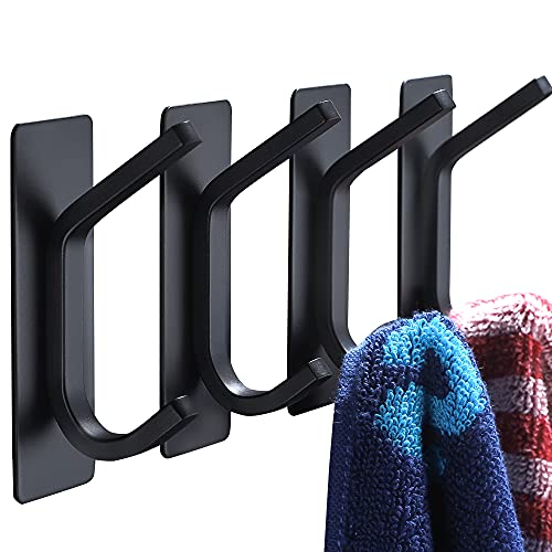 YIGII - ييجي خطاف منشفة / خطافات لاصقة - خطافات حائط سوداء للحمام والمطبخ، خطافات شديدة التحمل من الستانلس ستيل 4 قطع، 23.0 رطل، 23.0 رطل