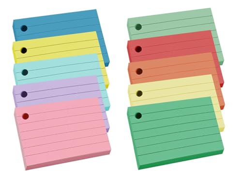 - تتضمن العبوة: 1000 قطعة من بطاقات الفهرس الملونة، 10 ألوان مختلفة، 100 قطعة لكل لون