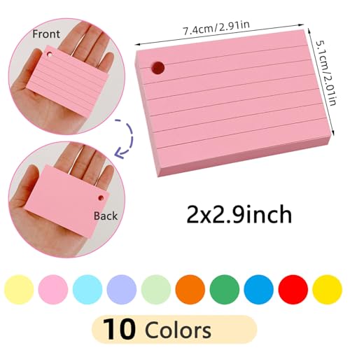 YIHUANYIFA - 10 بطاقات فهرسة ملونة من يهوانيفا، بطاقات فلاش 2×3 انش، 1000 قطعة من بطاقات الدراسة المسطرة للتعلم المدرسي والدراسة والذاكرة والمكتب والكلية