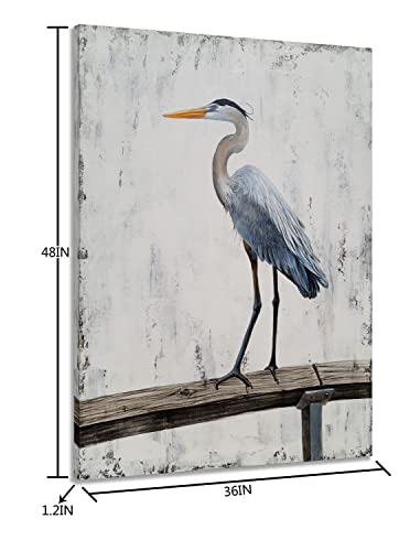 Yihui Arts - لوحة جدارية بنمط كوستال فارمهاوس، رسم لطائر مالك الحزين بتأثير بارز، عمل فني يصور طائرًا بشكل واقعي لتزيين غرف المعيشة والنوم والحمام، من ييهوي ارتس