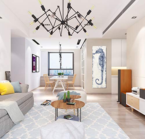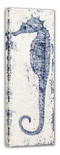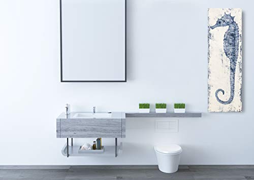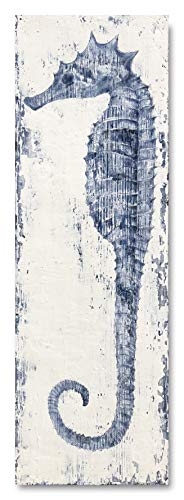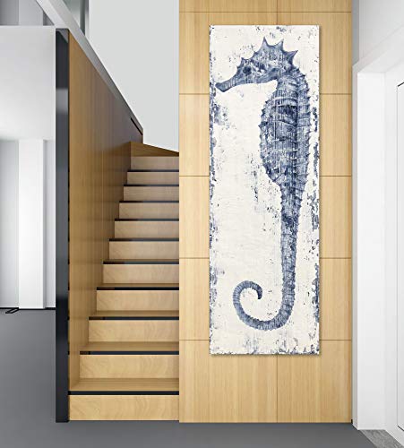 Yihui Arts - لوحة فنية جدارية من القماش بتصميم فرس البحر مرسومة باليد باللونين الأزرق والأبيض، صور ساحلية حديثة لغرفة المعيشة وغرفة النوم والرواق والحمام من ييهوي ارتس