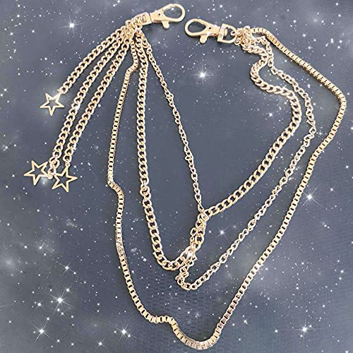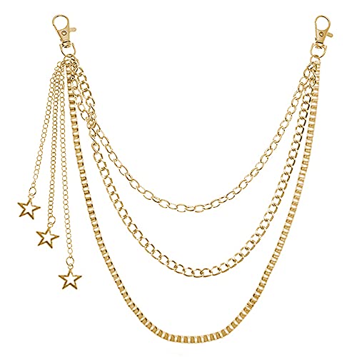 Yijunmca - سلسلة مفاتيح جيب ومحفظة متعددة الطبقات بشراشيب للبنطال مع قفل لوبستر لبنطال الجينز لون ذهبي للرجال والنساء من وايجنمكا, معدن, بدون أحجار كريمة