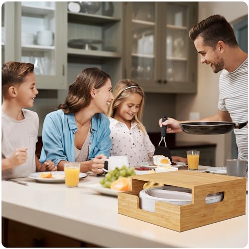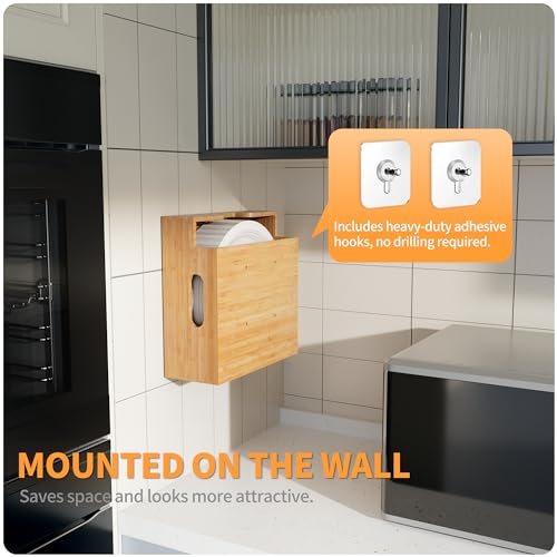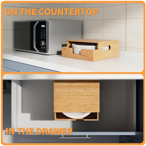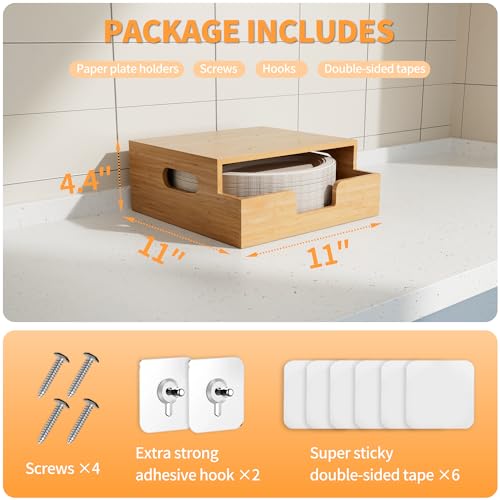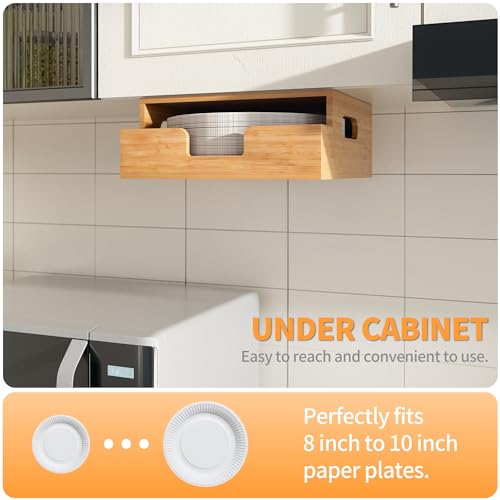 YIKIBOX - موزع اطباق ورقية 8-10 انش من ييكيبوكس، حامل اطباق ورقية يثبت على الحائط، موزع اطباق ورقية تحت الخزانة، منظم اطباق ورقية لطاولات المطبخ والمركبات الترفيهية (بامبو)