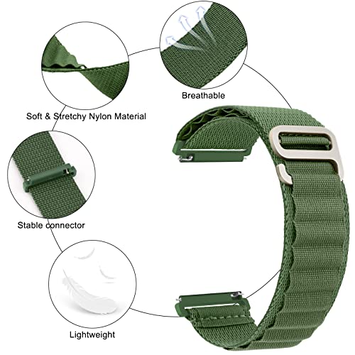 YILED - سوار حلقي رياضي من ييلد متوافق مع ساعات بعرض 20 و22 ملم، مصنوع من النايلون باللون الأخضر للجنسين مقاس 20 ملم