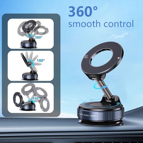 YILINCBB1 - حامل جوال للسيارة مطور 2025 قابل للتعديل بزاوية 360 درجة لماج سيف [اقوى شفط 80+LBS ومغناطيس 2400gf]، حامل جوال مغناطيسي بتفريغ الهواء لسيارتك لايفون 17 برو ماكس 16 15 14 13 12 اير بلس من يلين