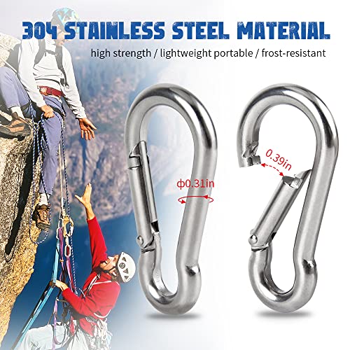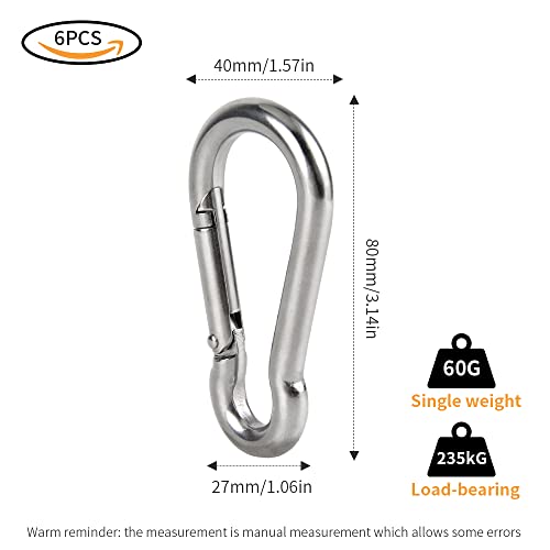 YiliYa - مجموعة خطافات تسلق متينة وشديدة التحمل للتثبيت مع مشبك سناب من الستيل الممتاز عالي الجودة بسعة تحميل 235 كجم مقاس 80 ملم × 8 ملم للمنزل والتخييم وصيد الاسماك والمشي لمسافات طويلة والسفر من 6 قطع