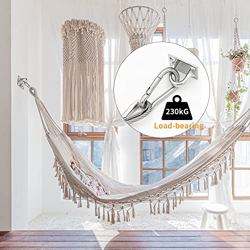 - حزمة من 6 خطافات تثبيت قوية: تتضمن مجموعتنا 6 خطافات حلقة معدنية مصنوعة من الفولاذ المقاوم للصدأ. مقاس كل خطاف 8 سم × 3.8 سم. يبلغ سمك كل منها 7.8 مم ويمكنها تحمل ما يصل إلى 235 كجم من الوزن. هذه الخطافات ذات حلقة معدنية مخصصة للسلامة والتثبيت وغير مناسبة للتسلق أو العمل الشاق.