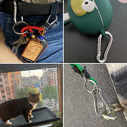 - متعددة الاستخدامات: هذه الحلقات مثالية للعديد من الاستخدامات اليومية. سواء كحلقة مفاتيح أو لربط الأشياء بحقيبة ظهرك أو أمتعتك أو عربة الأطفال أو لتعليق الحبال أو الحبال عند التخييم أو صيد الأسماك أو التنزه أو السفر.
