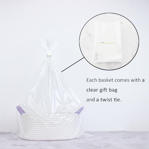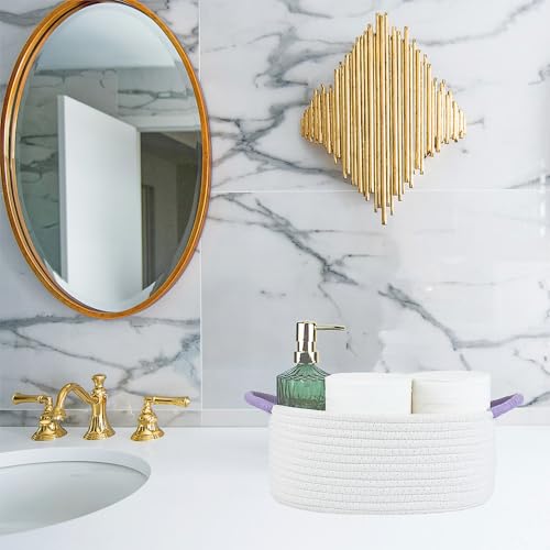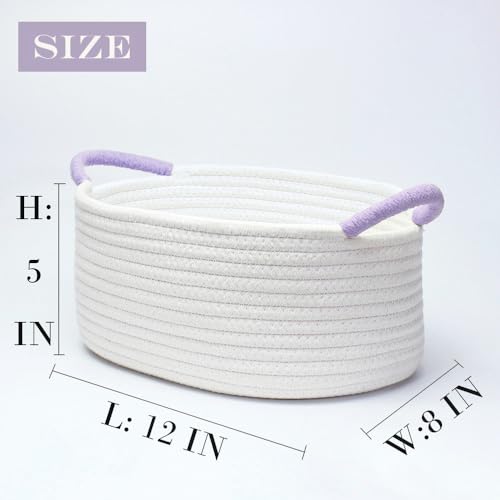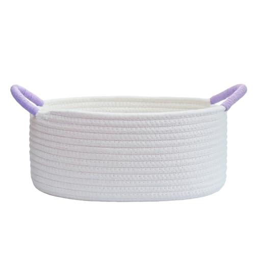 Yimi's Dream - سلال هدايا فارغة من يميز دريم، سلال منسوجة لطيفة للتخزين، سلال صغيرة مصنوعة من حبل قطن أبيض ومزودة بمقابض أرجوانية للتخزين للنساء والأطفال والحيوانات الأليفة (شكل بيضاوي، مقاس 30×20×13 سم)