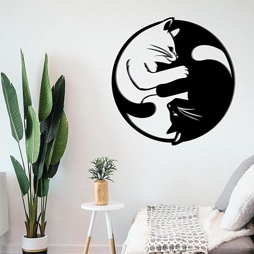 Generic - لوحة فنية جدارية بتصميم قطة من يين يانغ، مقاس 80×77 سم، لون اسود