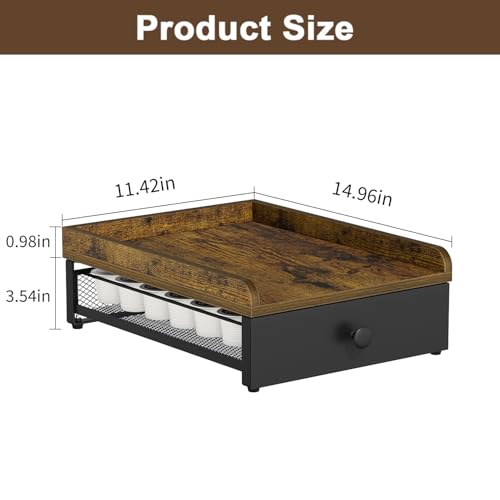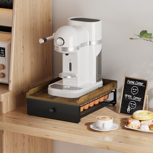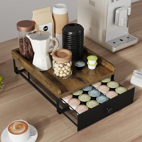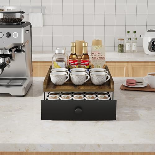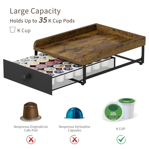 YINMIT - درج لكبسولات القهوة من ينميت، حامل اكواب خشبي على شكل حرف K للمنضدة، منظم كبسولات القهوة لكوب كيه بسعة 35 كبسولة مع سلال منزلقة للمنزل والمطبخ بتصميم رترو