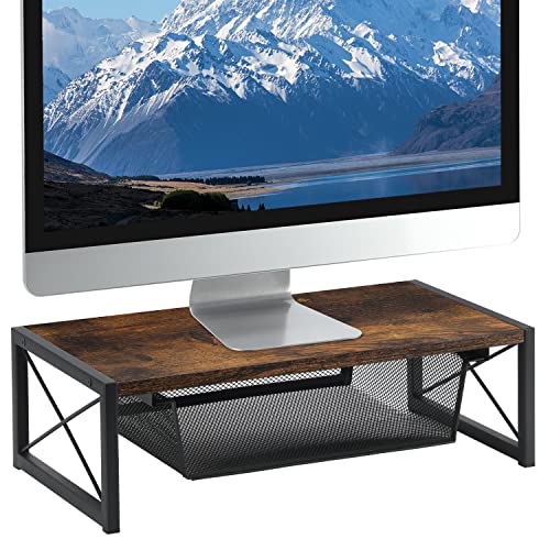 YINMIT - حامل شاشة مع درج تخزين، منظم رف مكتبي بمقاس 45 سم، حامل شاشة مريح للمكتب وسطح المنضدة لأجهزة اللابتوب والكمبيوتر والماك بوك والنوت بوك والكمبيوتر من ينميت (صغير)