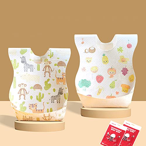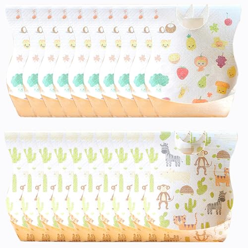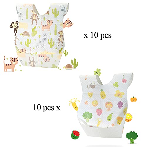 YinQin - 20 قطعة من مرايل الاطفال للاستعمال مرة واحدة من يينكين مقاومة للماء مع جيب لالتقاط الطعام، مرايل طعام محمولة للاطفال الصغار الاولاد والبنات، مرايل طعام مناسبة للاستخدام الخارجي والسفر