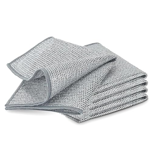 YinQin - قطعة قماش غسيل الأطباق السلكي من الفولاذ المقاوم للصدأ، تصميم مزدوج الطبقات متين ومقاوم للخدش، قابلة لإعادة الاستخدام ومثالية للاستخدام الرطب والجاف على الأطباق والأحواض وأسطح المواقد، عبوة من 5 قطع