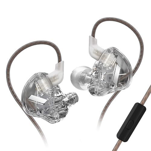 Yinyoo - سماعة أذن داخل الأذن مع ميكروفون كيه زد اي دي اكس بمشغل ديناميكي مغناطيسي مركب بتقنية هاي فاي مقاس 10 ملم مع كابل بدبوسين قابل للفصل 0.75 ملم بلون رمادي شفاف من ينيو