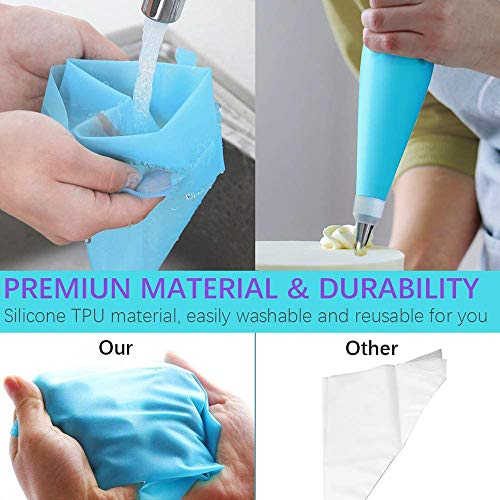 Yiouou - مجموعة اكياس واقماع 9 قطع مكونة من كيسين سيليكون لتزيين الكيك و6 اقماع لتزيين الحلويات واداة التزيين من ييوو