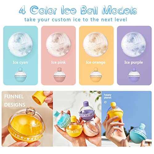 YIPBFUONE - قوالب مكعبات ثلج سيليكون لصنع كرات الثلج مانعة للتسرب كبيرة سهلة الفك للمشروبات والكوكتيلات والقهوة والعصير والماء - 4 قطع