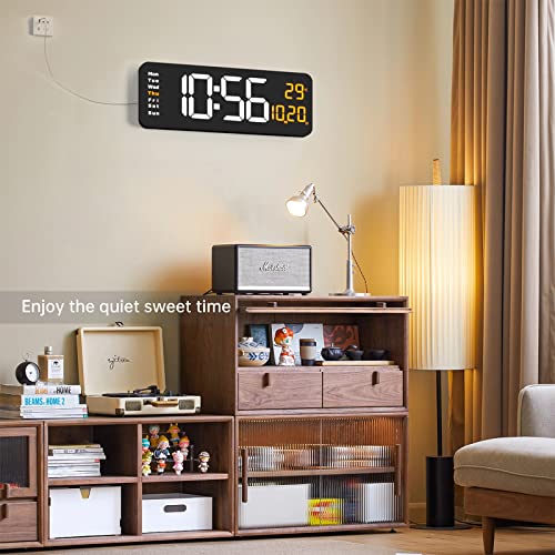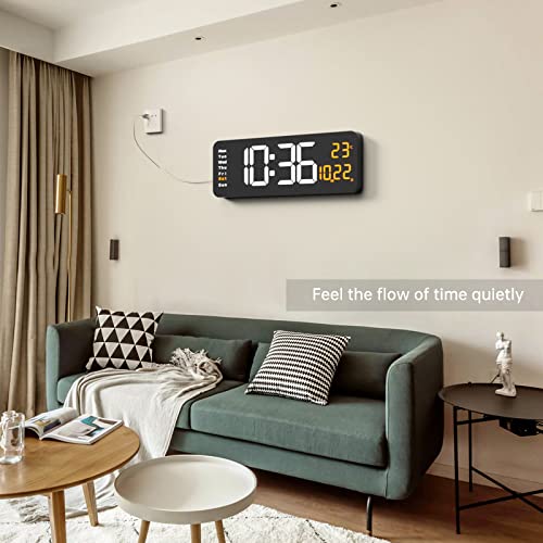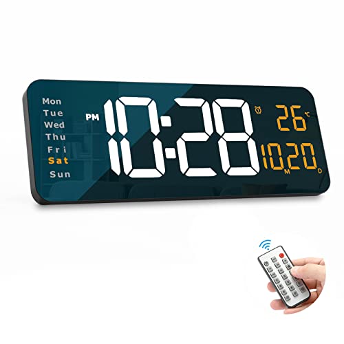 YISILE - ساعة حائط رقمية كبيرة بشاشة عرض 41 سم مع جهاز تحكم عن بعد وشاشة LED وخاصية التعتيم التلقائي التاريخ والاسبوع ودرجة الحرارة (برتقالي)