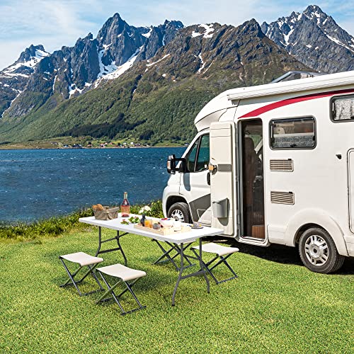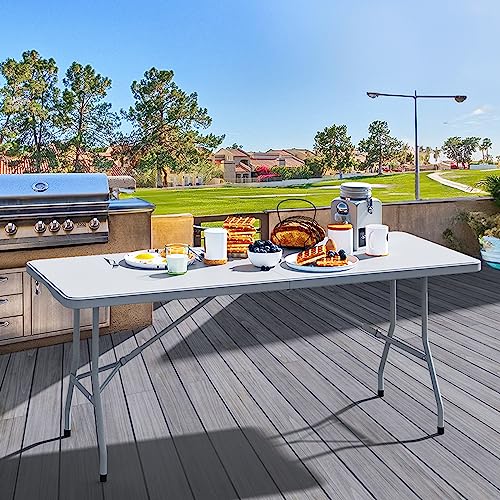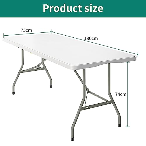 YITAHOME - طاولة تخييم قابلة للطي بطول 1.8 م بمقبض، طاولة نزهة شديدة التحمل ومقاومة للماء، طاولة لصق قابلة للطي، طاولة محمولة للحفلات الخارجية والشاطئ وحفلات الشواء، 180 م × 75 × 74 سم من يو هوم (أبيض)