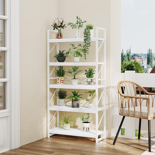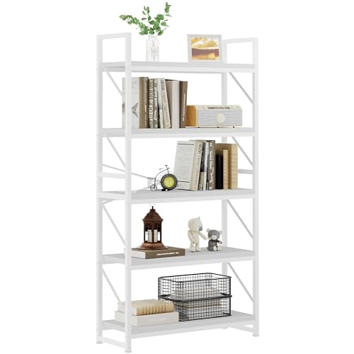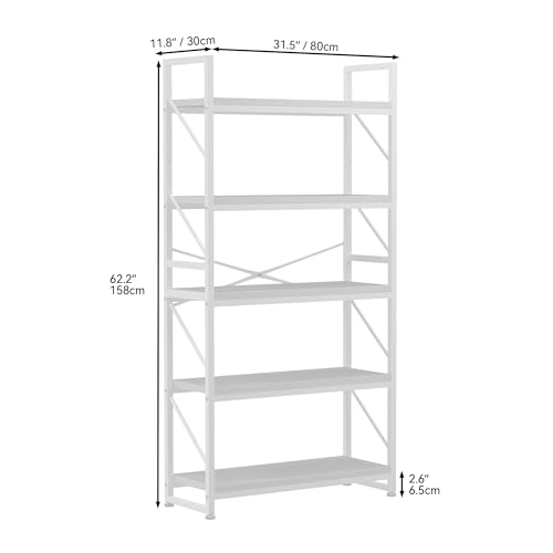 YITAHOME - يتا هوم خزانة كتب صناعية من 5 طبقات كبيرة قائمة بذاتها رف خشبي باطار معدني عرض لغرفة المعيشة والمنزل والمكتب بيضاء نقية
